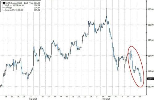 Goldman’s Geopolitical Risk basket slid to one-month lows...