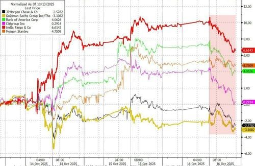 The S&P 500’s failure to stay above 6,700 marked a crucial technical breakdown. Once that level gave way, 0DTE flows turned sharply negative, intensifying the selloff. Beneath 6,700 lies a negative gamma pocket, where dealer hedging accelerates moves. SpotGamma sees positioning as an added destabilizing force. With stocks just 1% from all-time highs, heavy call exposure, elevated VIX levels, and substantial VIX call positioning, the setup is murky—especially with CPI looming, which could keep volatility bid.**Regional Bank Concerns** Zions and Western Alliance revealed issues tied to loans involving alleged fraud, fueling fears of broader credit deterioration. As Stephens’ Terry McEvoy noted, several “one-off” credit events have surfaced this quarter, and investors are paying attention.