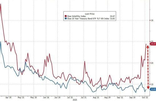 Equity volatility remains sharply decoupled from bond volatility—the widest gap since Liberation Day.
